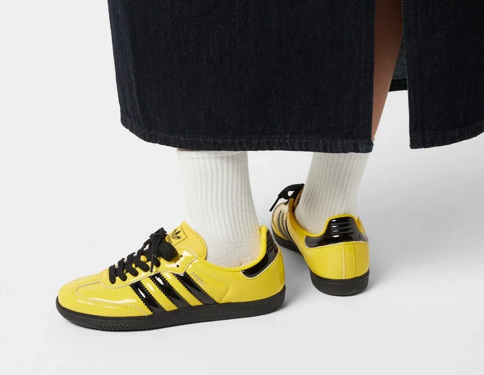 Samba Longue tongue a playful reinterpretation of a heritage silhouette, blending pony hair material with cow-print patterns with bold color blocking. A special pack that elevates the model and feel premium and bold for consumers.